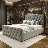 Lika Wide Curved Winged Upholstered Soft Velvet Designer Bed Frame