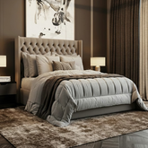 Dreamer Wide Winged Upholstered Soft Velvet Designer Bed Frame