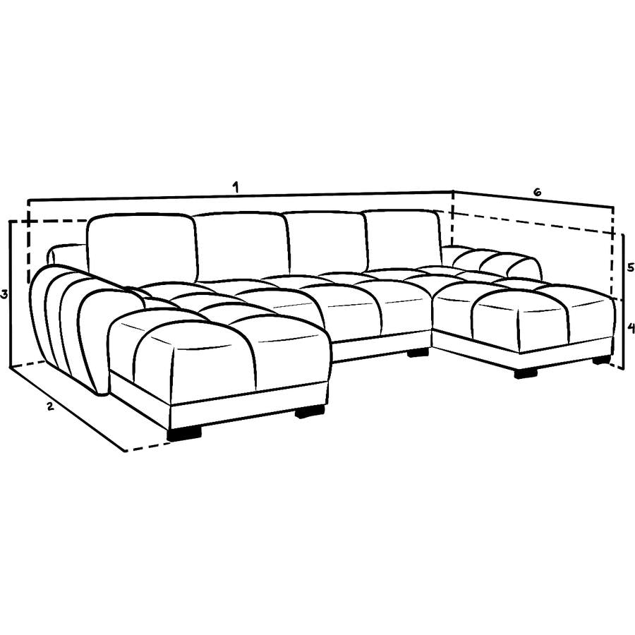 The best relaxation corner! Wrap yourself in plush velvet and create a stunning centrepiece in your living room with the U-shaped Azzuro sofa.