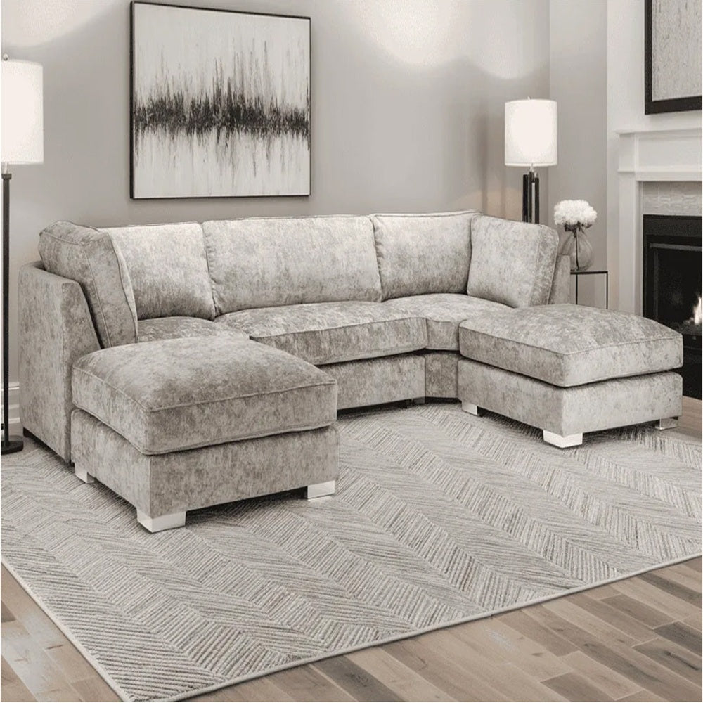 The Bishop is a stunning, large U-shape corner sofa that’s sure to command any living space. With oodles of seating space, this sofa is perfect for the whole family or for simply stretching out and getting comfy. This sofa features a stunning platinum Chennile fabric that not only looks great but also endures wear more than most fabrics. With soft fullback cushions, this sofa is as comfy as it is stylish!