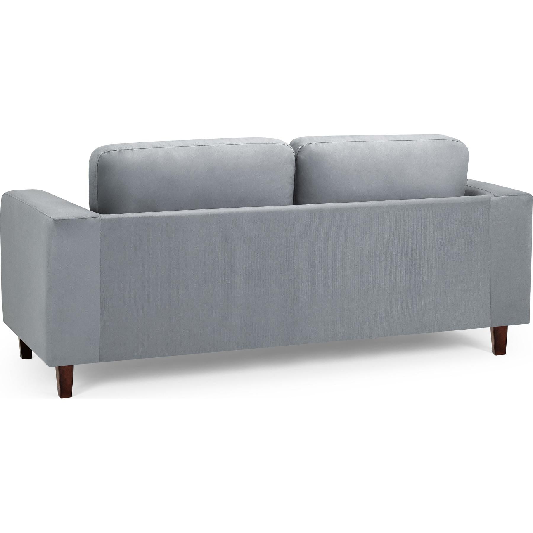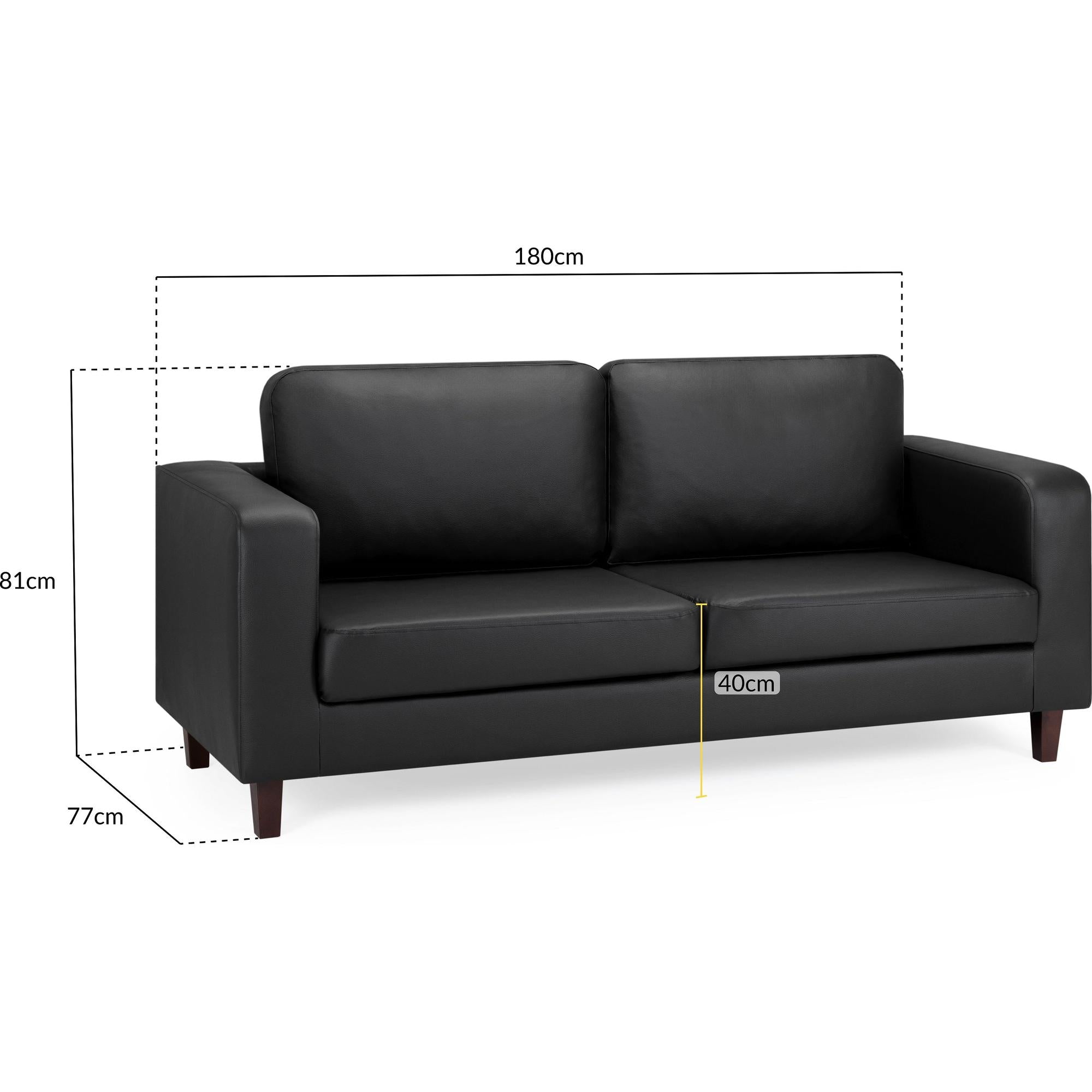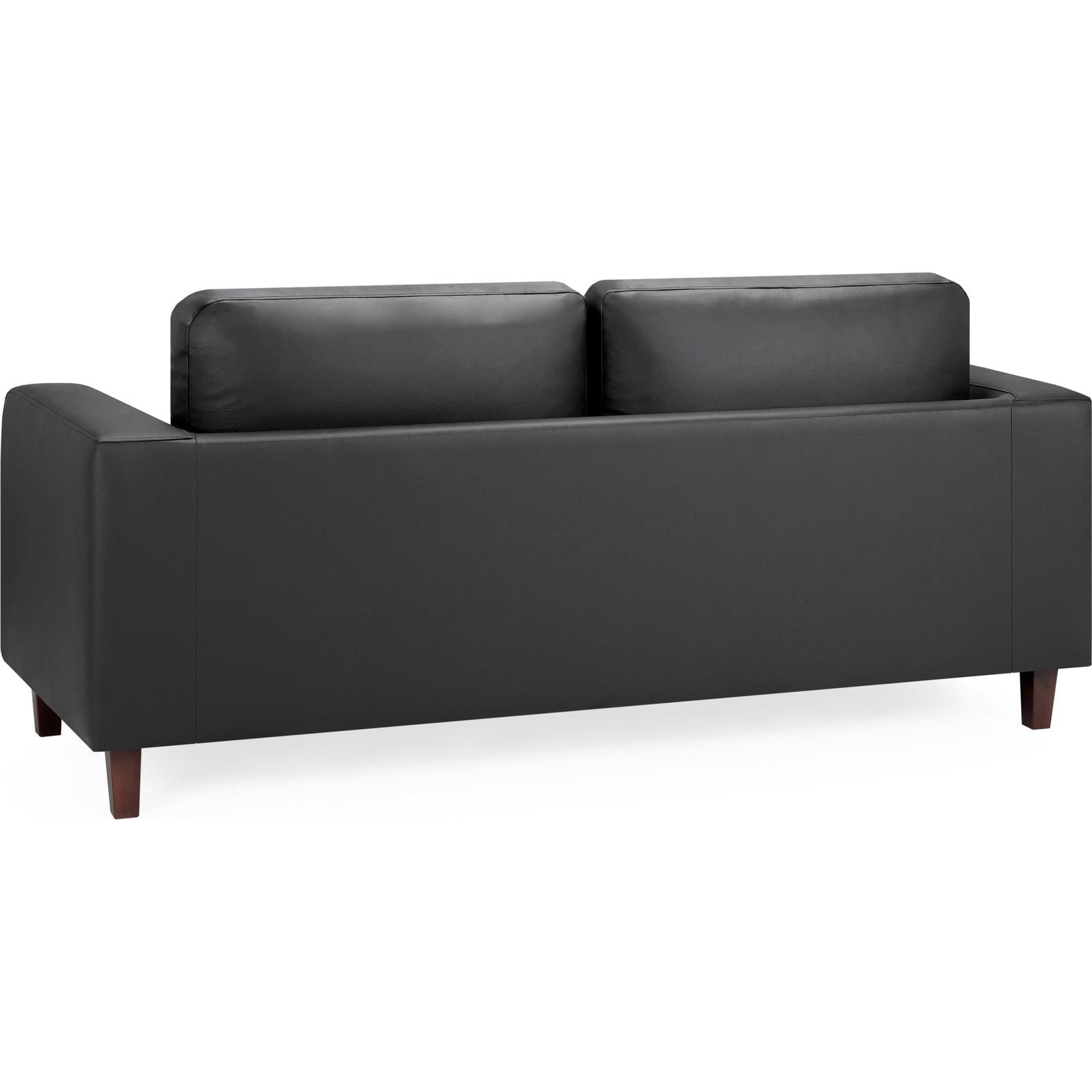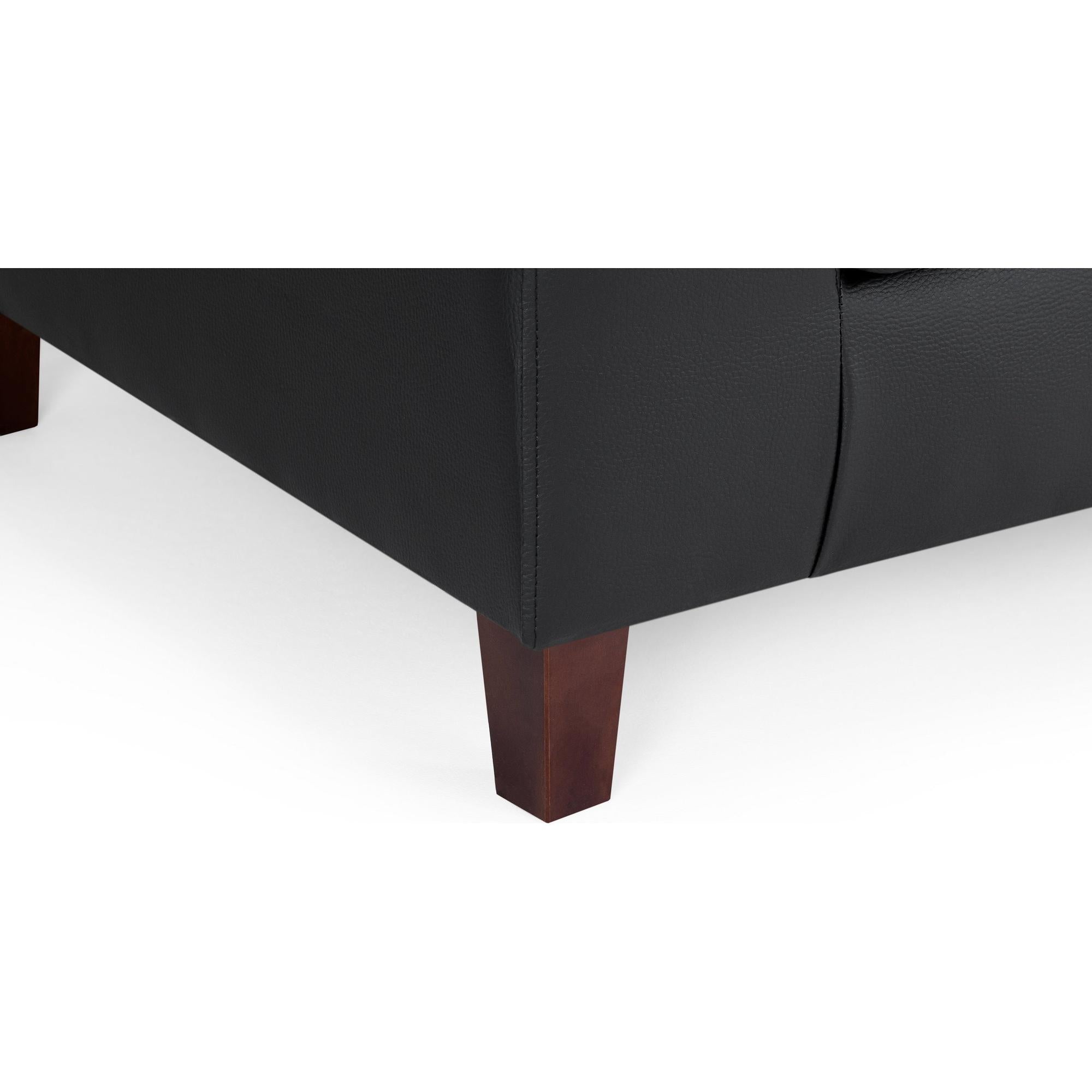 Compact and simple, ‘Sofa in a Box’ is exactly what it is. Upholstered in a faux leather and paired with dark wood legs make this a sleek and modern design. Available in Black PU. A popular choice for accommodations and rentals.