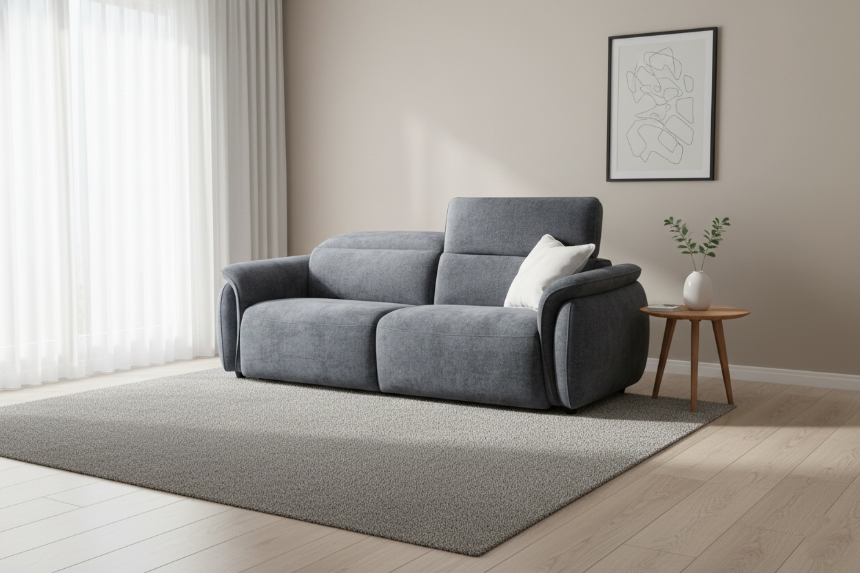 The Chelsea sofa combines sleek, contemporary design with laid-back comfort. Its cushioned armrests and smooth reclining seats create the perfect spot to relax, while the rich charcoal fabric adds a stylish, modern touch.