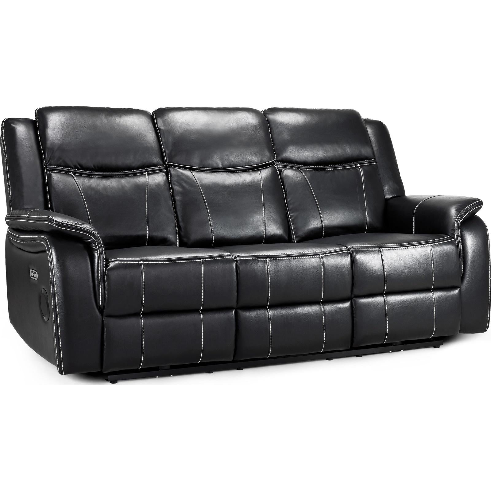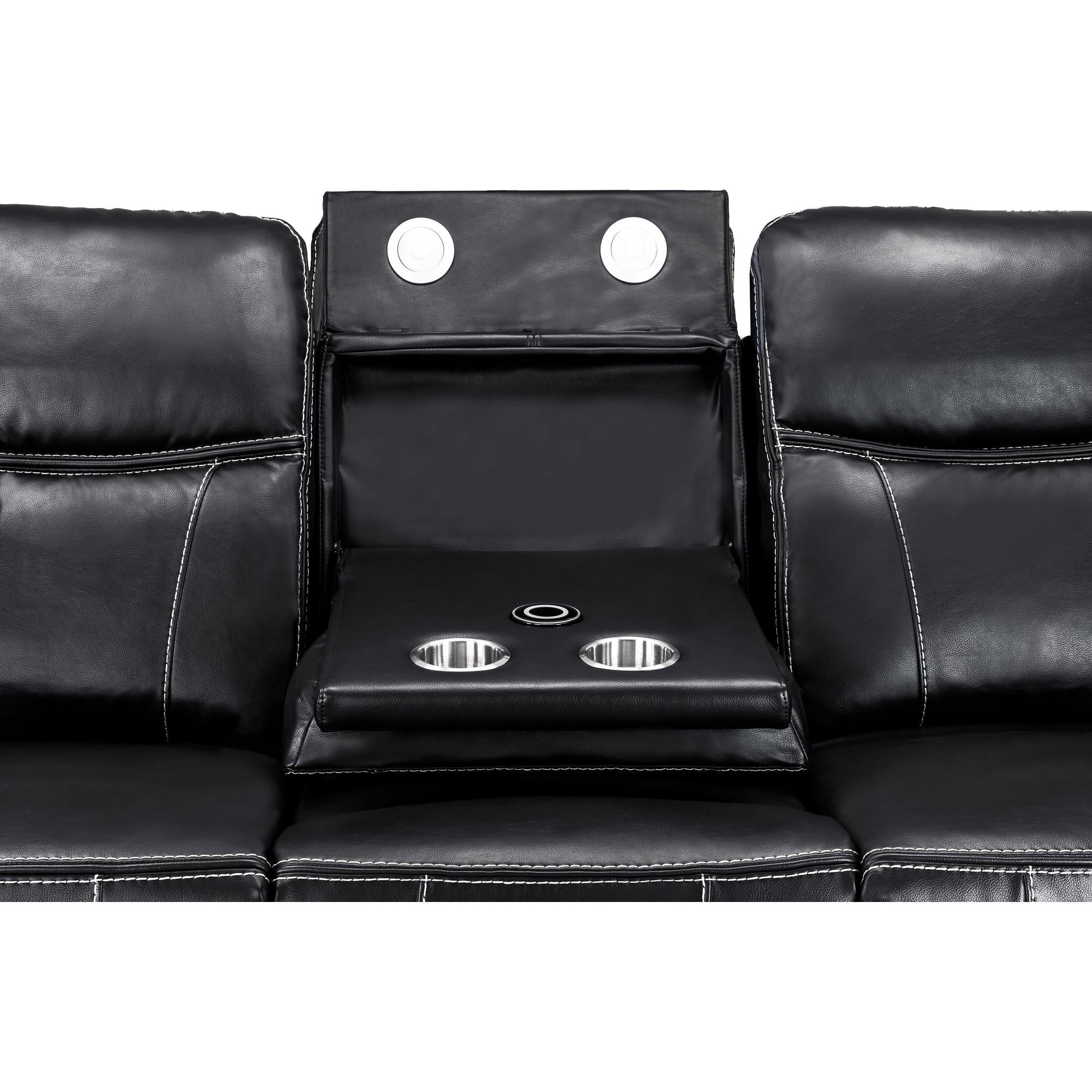 the perfect set for any modern home. Available in Black Leather aire, this set stands out with its contrast stitching, padded arms and centre console. Currently available as a 3 seater.