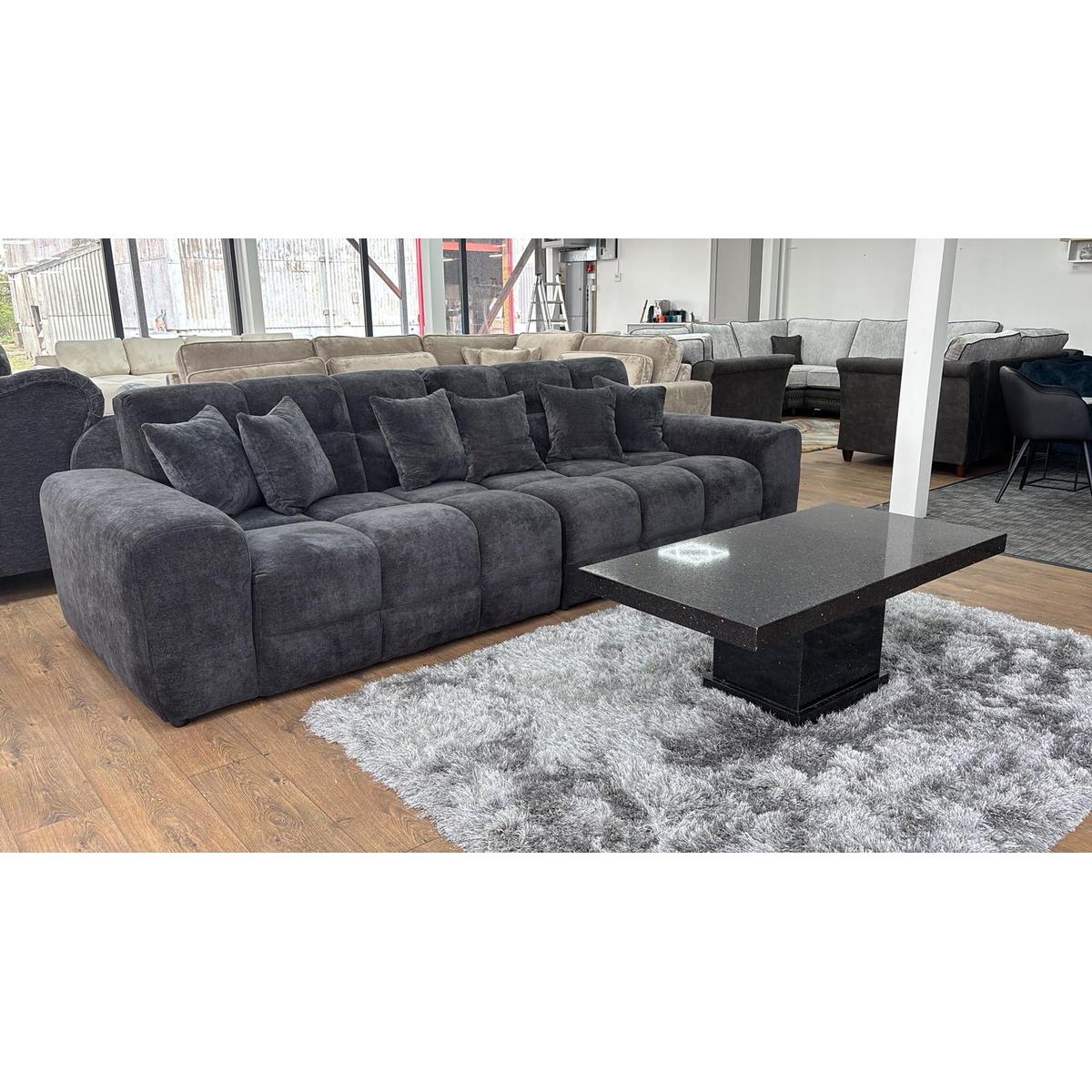 Commanding attention with its impressive scale and modern design, the Jacob Black Fabric 4-Seater Sofa is the ultimate statement piece for a luxury living space. Combining an expansive seating area with the collection's signature "quilted comfort," this 4-seater is designed for those who value both style and room to move. Its generous proportions make it the perfect anchor for large open-plan rooms or media centers, offering a sleek, black fabric finish that exudes contemporary elegance.