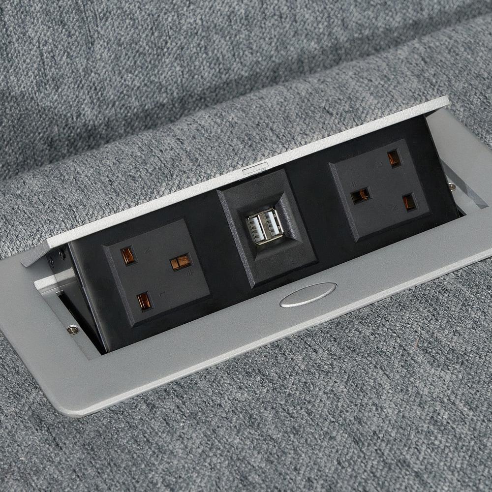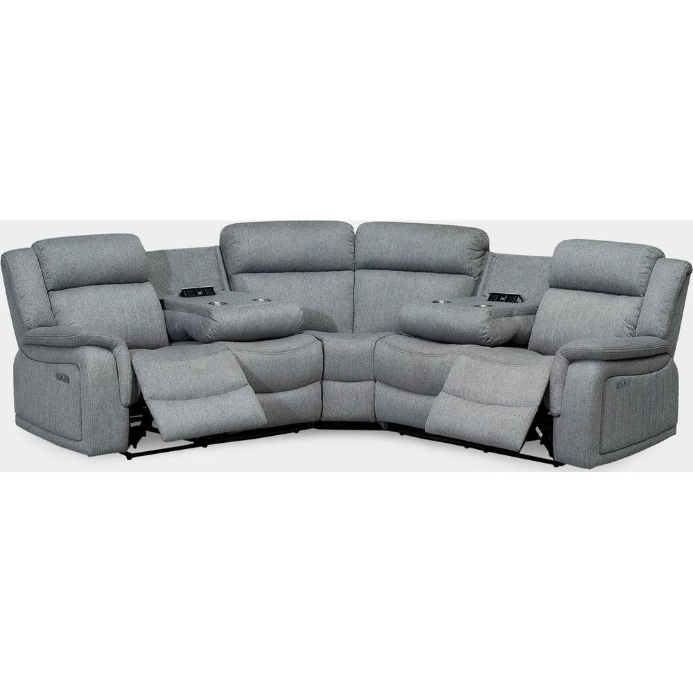 Gather in spacious comfort! The Linden electric recliner grey large corner welcomes the whole crew. Luxurious fabric, pillow-top armrests, and effortless electric recliners make every seat an oasis of relaxation.