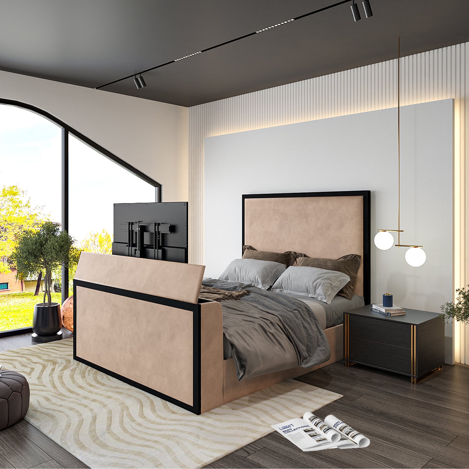 Our TV bed's generally accomodate a tv screen size of up to 50'' subject to make and model of the tv. If you are wanting to use a bigger tv, then we would recommend the upgrade tv foot option. By opting for this, you can use a screen sie of up to 65''