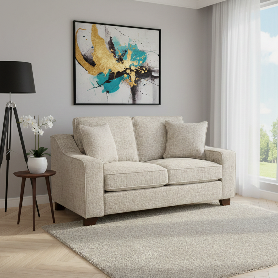 Not enough room, but lots of aesthetic? The perfect answer is the Nebraska 2-seater sofa in stone! This comfortable piece has all the comfort you need and is upholstered in soft fabric in stone.