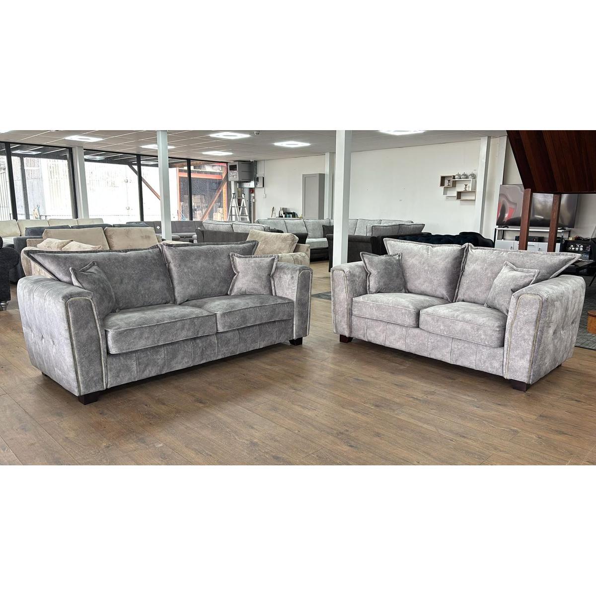 Our Serena range is now available in three stunning colours, a mocha brown, silver grey and a charcoal black. Each colour is complimented by a metal trim on the arms, quilted sides, fine wooden feet and high back cushions. This range is definitely a showstopper! This range includes a, 3+2 Seater Sofa Set.