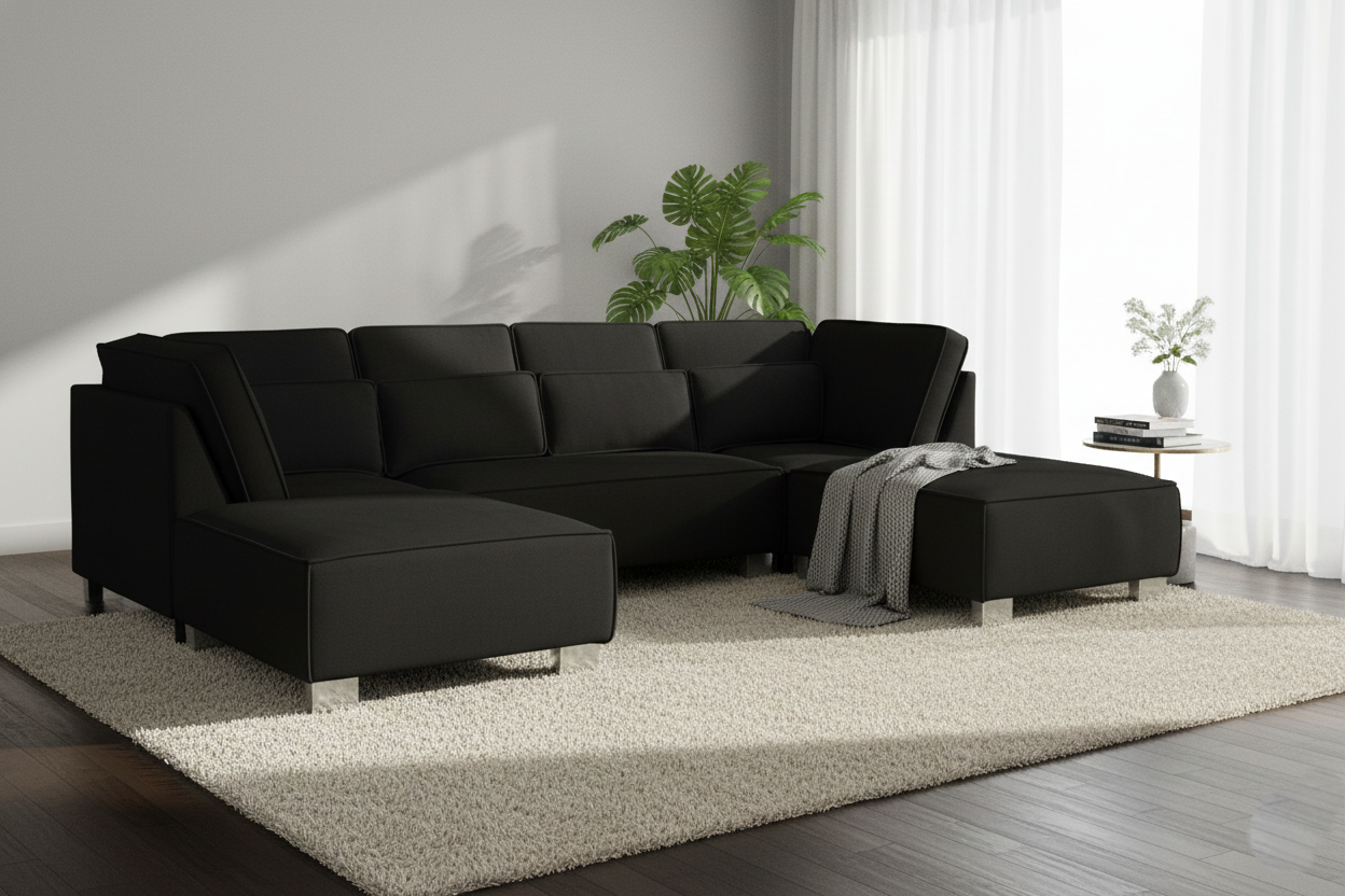 The Sloane Collection is a magnificent, modern sofa, with soft, Black plush fabric upholstery, relaxed, deep seating and soft, comfortable cushions. This stunning, luxurious sofa is sure to command any living space!