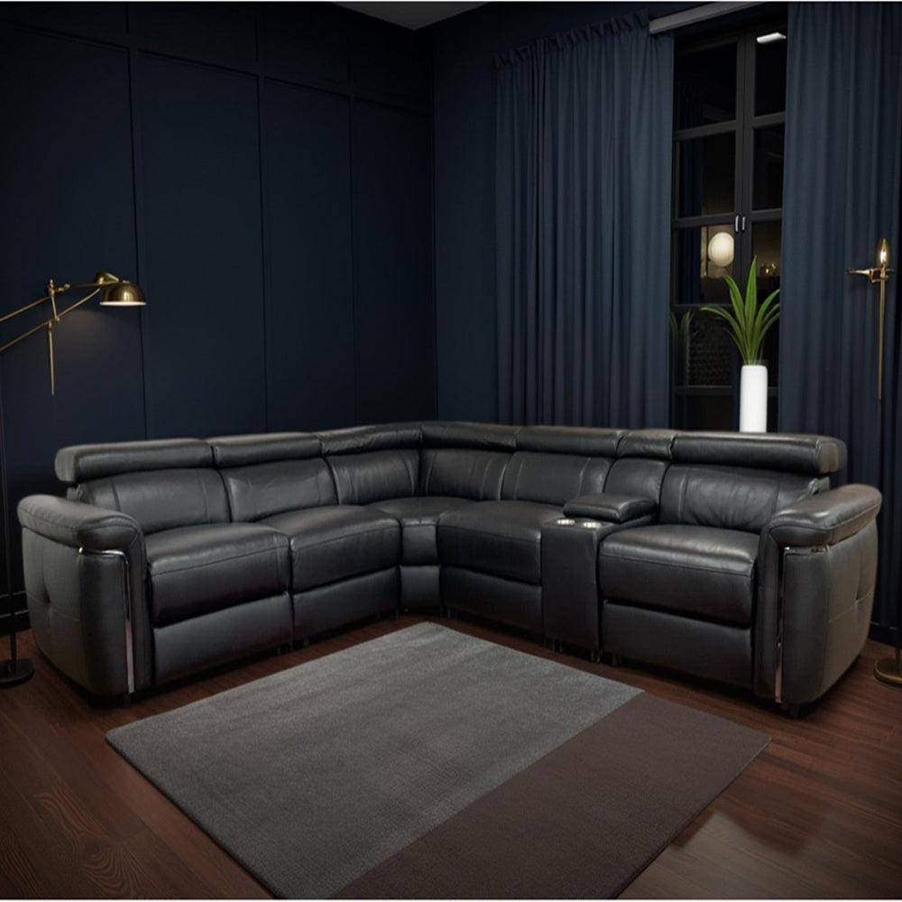 Indulge in ultimate comfort with the Somerville Electric Recliner corner sofa. Crafted from luxurious genuine leather, its end seats smoothly recline at the touch of a button. A convenient console features integrated cupholders and hidden storage, making it the ideal centrepiece for stylish relaxation.