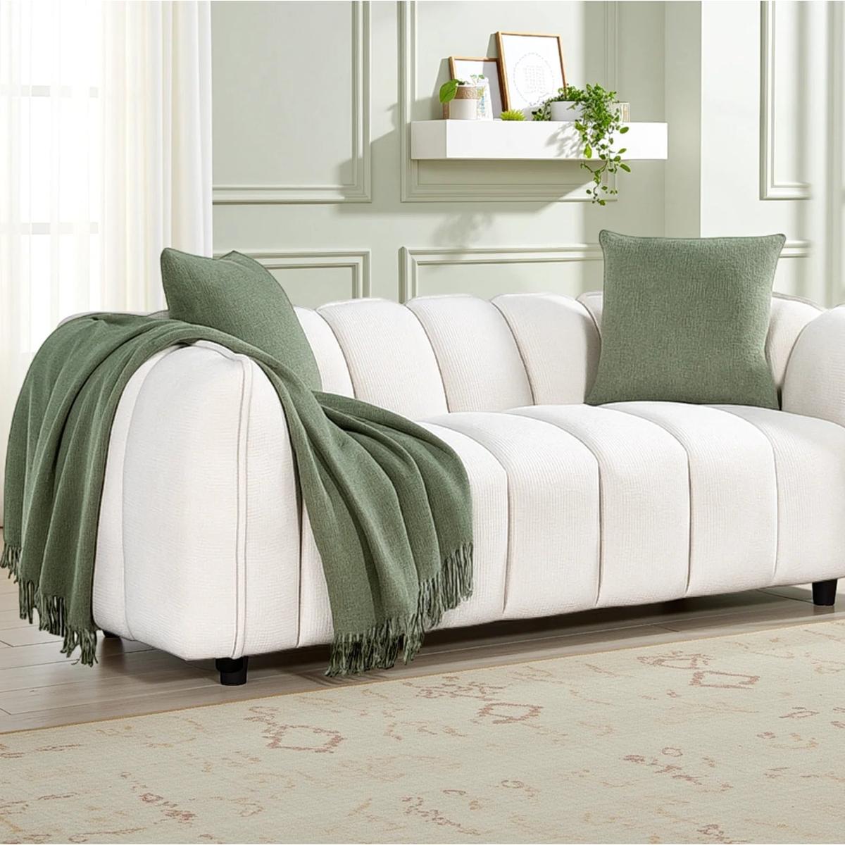 Elevate your living space with the Venice 3 Seater Sofa—a statement of contemporary comfort and understated elegance. Upholstered in a soft, textured olive fabric, this sofa features a distinctive channeled design that adds both visual interest and plush support. The generously padded frame and deep seating ensure an inviting lounge experience, perfect for relaxing or entertaining.