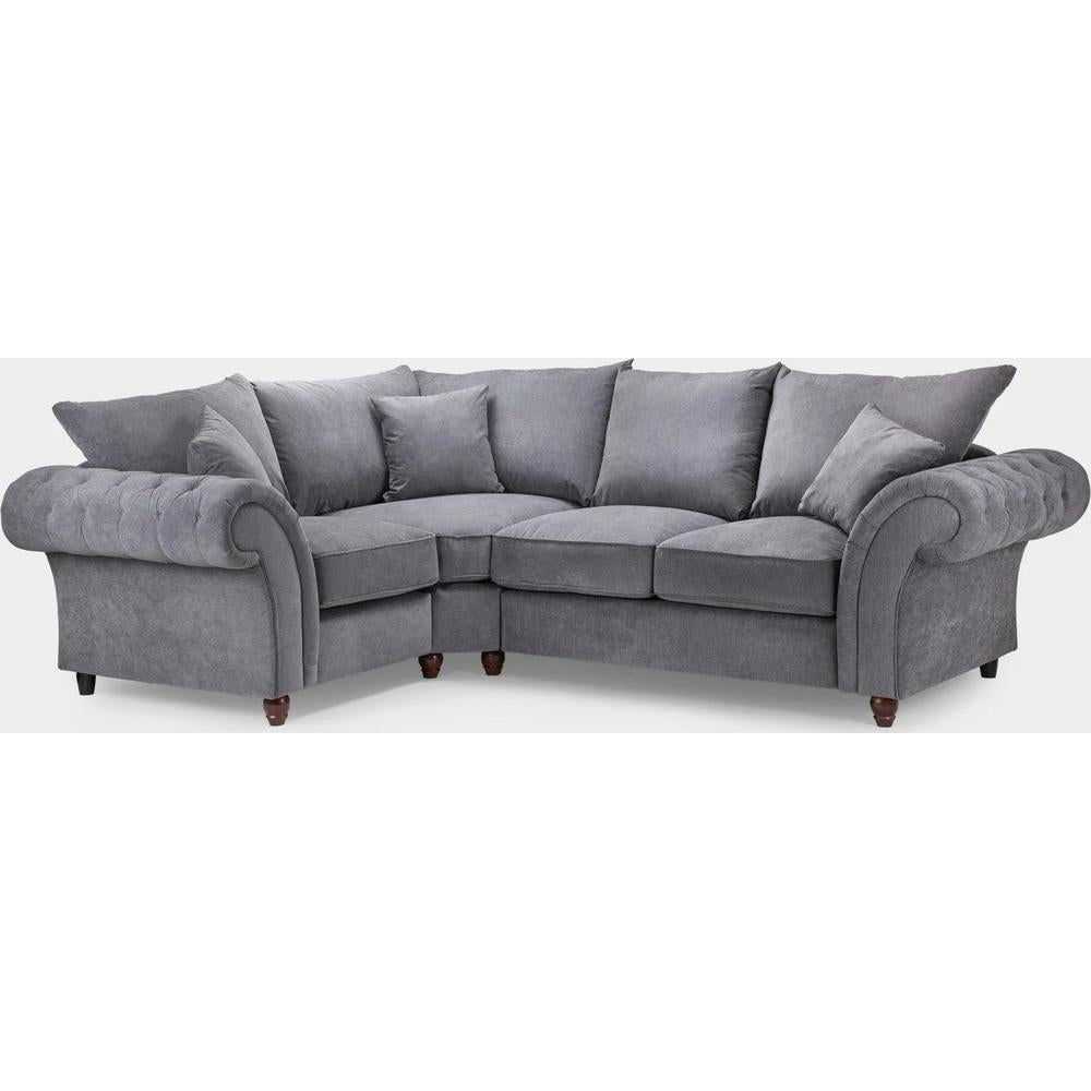 With soft polyester upholstery and luxury foam cushions, The Windsor is as comfortable as it is stylish. The rounded, buttoned arms give the range an elegant, classic look, however The Windsor is perfectly suited to any modern living space. The Windsor stone, left hand facing corner sofa is one of our most popular sofas!