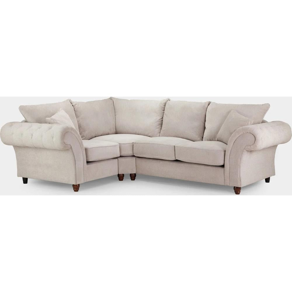 With soft polyester upholstery and luxury foam cushions, The Windsor is as comfortable as it is stylish. The rounded, buttoned arms give the range an elegant, classic look, however The Windsor is perfectly suited to any modern living space. The Windsor stone, left hand facing corner sofa is one of our most popular sofas!